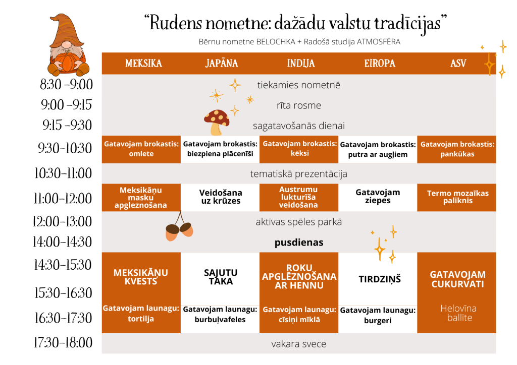 No 20. līdz 24. oktobrim – “Rudens nometne: dažādu valstu tradīcijas”